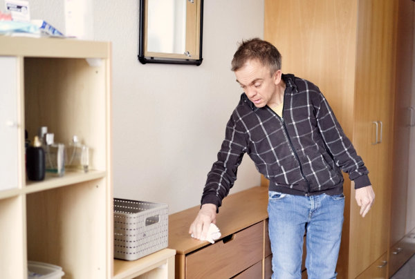Der Erhalt der Eigenständigkeit unserer Mitmenschen trägt zu unserem Leitbild bei. Nach dem Motto „So wenig wie möglich und so viel wie nötig“ helfen unsere Bewohner*innen regelmäßig bei den haushaltsnahen Tätigkeiten. Von dem regelmäßigen Einräumen der Spülmaschine, über das Staub wischen, bis hin zum Schwingen des Staubsaugers sind unsere Bewohner*innen stets an unserer Seite.