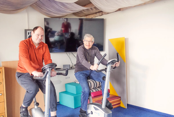 Neben der Geschicklichkeit fördern wir auch die Bewegung unserer Bewohner*innen. Der Bewegungsraum ist unter anderem mit Ergometern ausgestattet, die sich großer Beliebtheit erfreuen.