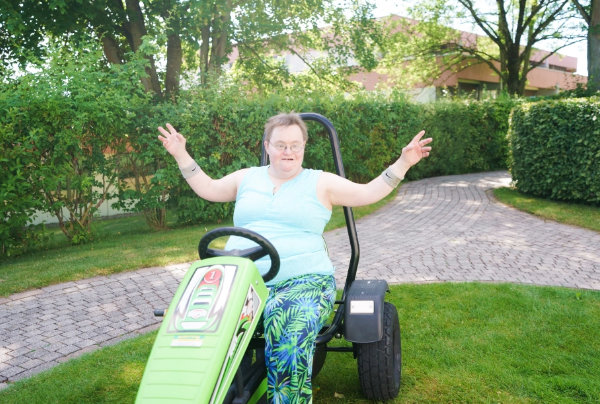 Im Sommer wird viel Zeit außerhalb des Wohnhaus verbracht. Dabei sorgt das Kettcarfahren bei einigen Bewohner*innen für viel Vergnügen.